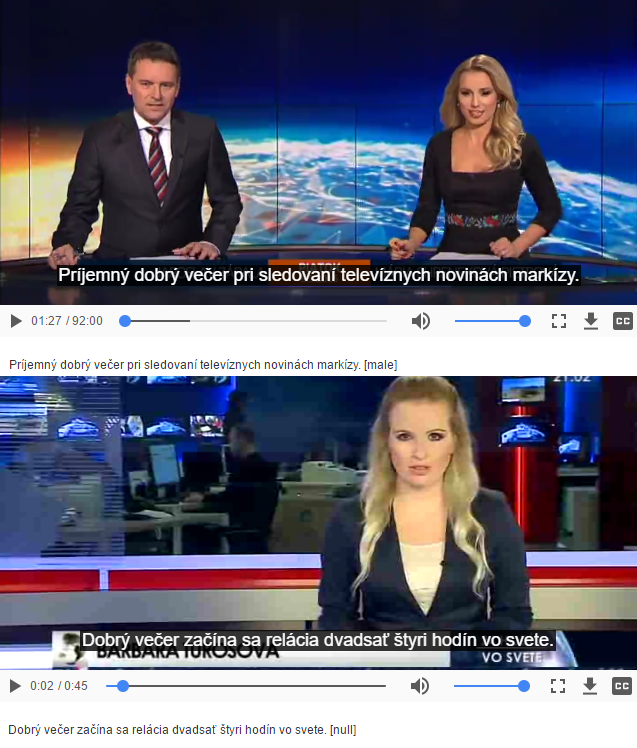 Staš, J., Viszlay, P., Lojka, M., Koctúr, T., Hládek, D., Juhár, J. (2018) Automatic transcription and subtitling of Slovak multi-genre audiovisual recordings. In: Human Language Technology, Challenges for Computer Science and Linguistics, Vetulani, Z., Mariani, J., Kubis, M. (Eds), LNCS, Volume 10930, Springer, Cham, ISBN 978-3-319-93781-6, pp. 42-56.